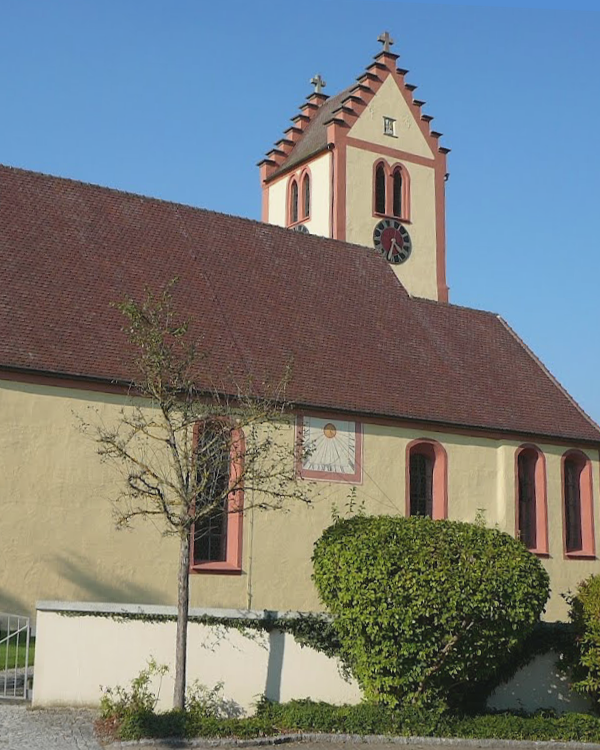 Eine Kirche dürfte schon relativ lang auf diesem Platz gestanden haben. Ersmals wird sie 1275 erwähnt – einem mittelalterlichen „Steuerbescheid“ sei Dank ;). Im Jahr 1353 übernahm eine reiche Handelsfamilie (Patrizier) Mai(g)enberg aus Ravensburg das Patronat über die Kirche und daher hat das Wappen der Stadt eine Ähnlichkeit mit dem Wappen dieser Familie. Ab 1508 stand sie ganz im Zeichen des Klosters Weingarten. Schon zuvor, ab 1464, war die Kirche den Aller Heiligen gewidmet.