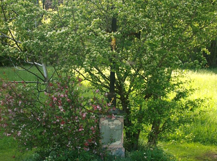 Allerdings beschleicht den Betrachter bei manchen dieser Wahrzeichen die Vermutung, dass die Ursache des Errichtens bei den heutigen Besitzern etwas in Vergessenheit geraten ist und das ist sicherlich auch der Fall. Denn meist wurden die Kreuze ja auf jeweils eigenen Grundstücken der Erbauer-Familie errichtet und viele Grundstücke haben im Laufe der Generationen ihre Besitzer gewechselt, so dass ein heutiger Besitzer oft nur noch wenig über die Motive des ehemaligen Stifters weiß und damit auch das Feldkreuz in der Landschaft etwas in Vergessenheit gerät. Meist bleiben dann mindestens wunderschöne und wildromantische Busch-Gemeinschaften in der Landschaft, die das ehemals religiöse Wahrzeichen in ihrer Mitte aufnehmen und einer Vielzahl von Vögeln Schutz und Unterschlupf bieten.