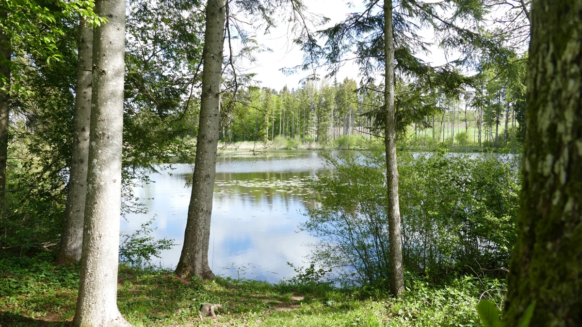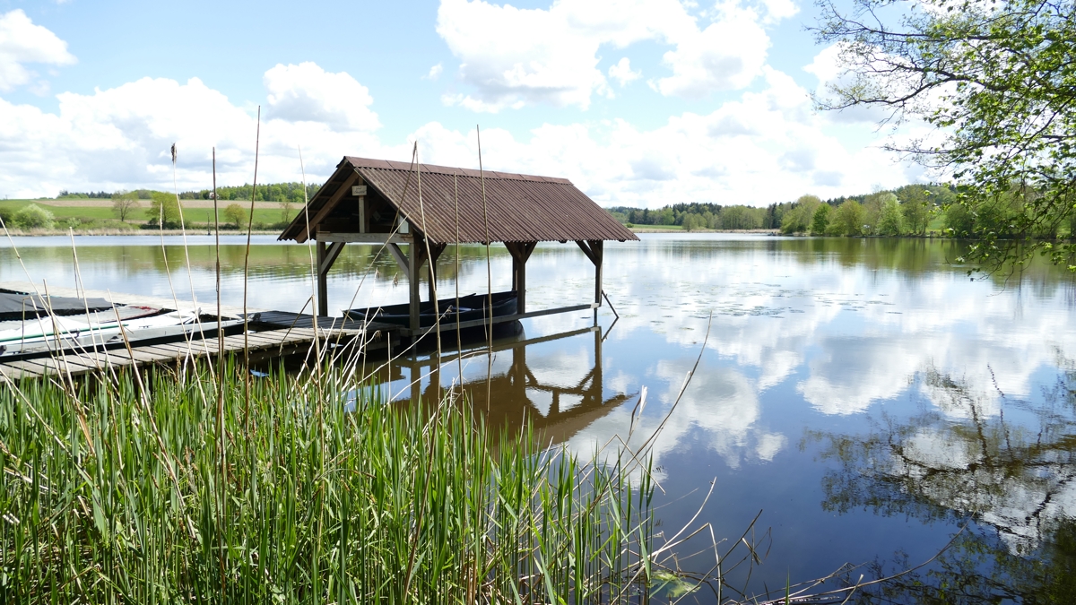 Wenn man vom höchsten Punkt der Gemeinde im Ortsteil Bauhof auf das tiefer gelegene Guggenhausen hinunter schaut, ist es vor allem der ca. 10 ha große Guggenhauser Weiher, der ins Auge fällt.